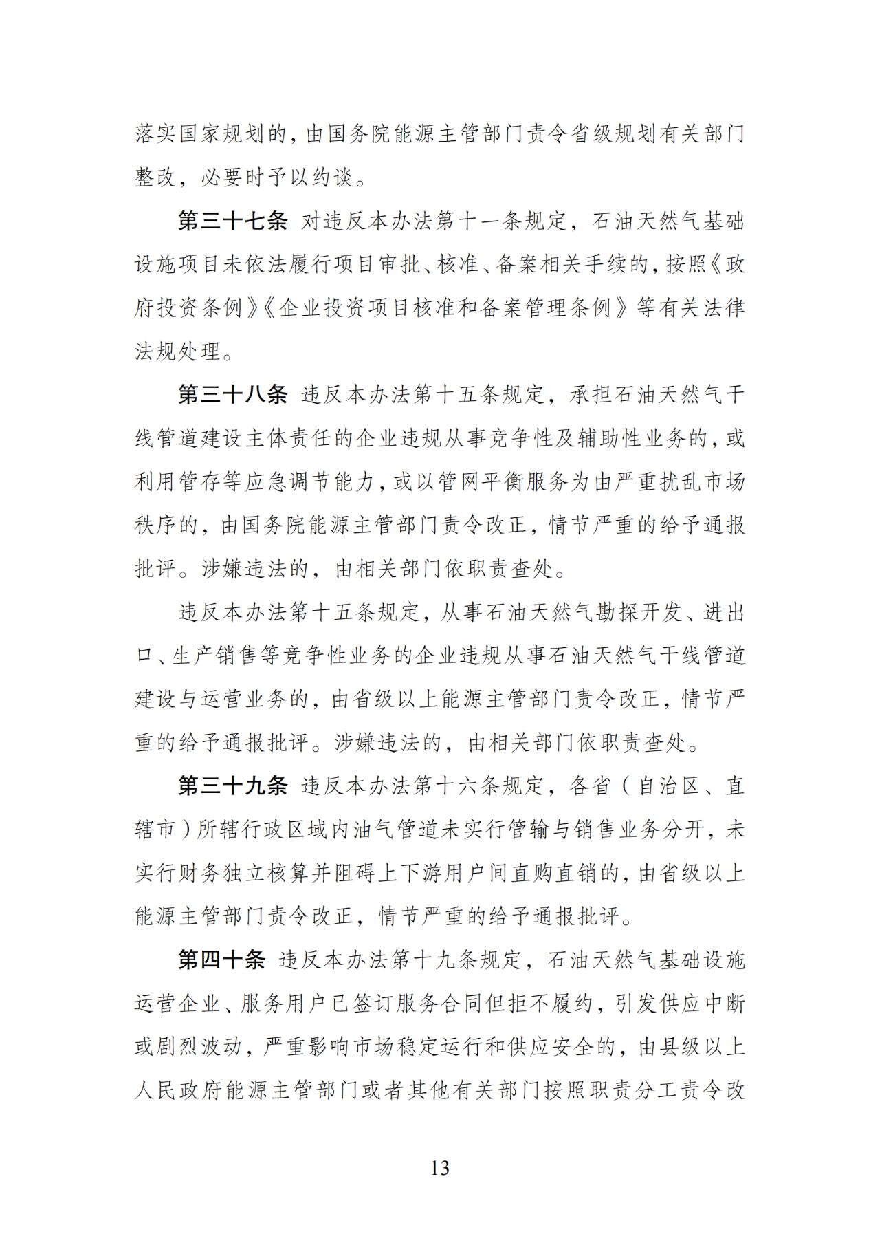 國家發(fā)改委《石油天然氣基礎設施規(guī)劃建設與運營管理辦法》第35號令