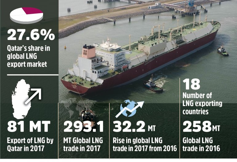 卡塔爾于2017年保留了世界上最大的液化天然氣(LNG)出口國之冠。該國去年出口了8100萬噸(MT),使其在全球液化天然氣貿易中保持市場領先地位,占27.6%。 ,國際天然氣聯盟發布的“2018年世界液化天然氣報告”稱。